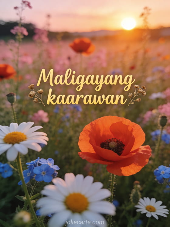 Ipagdiwang ang isang espesyal na kaarawan gamit ang magandang card na may bukid ng mga bulaklak sa paglubog ng araw. Tuklasin din ang isang libreng larawan ng kaarawan o isang card na may pagbati ng kaarawan.