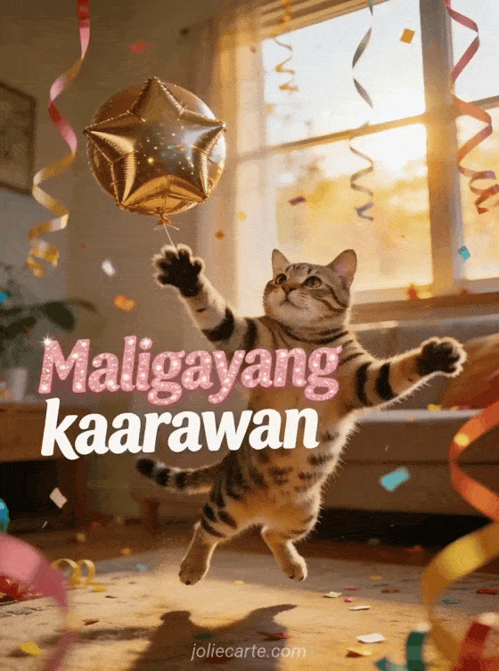Maligayang kaarawan isang malikot at nakakatawang pagbati ng kaarawan na may tumatalong pusa