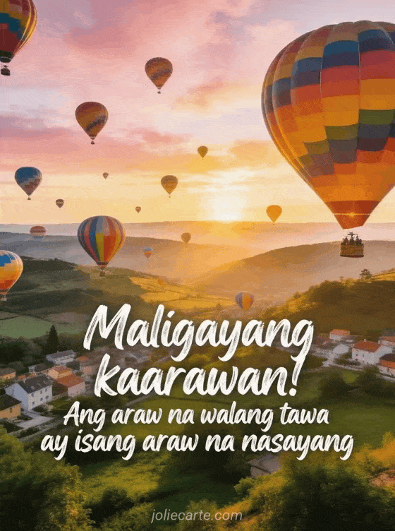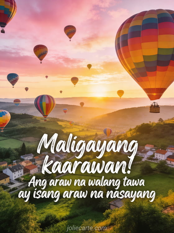 Magpadala ng masayang pagbati ng kaarawan para ipaalala na ang araw na walang tawa ay isang araw na nasayang. Ang nakapagbibigay-inspirasyong card na ito ay nagdiriwang ng buhay at saya. Tuklasin din ang nakakatawang drawing ng kaarawan para sa babae, ang nakakatawang pagbati ng kaarawan na may pusa o ang nakakatawang pagbati ng kaarawan para sa babae.