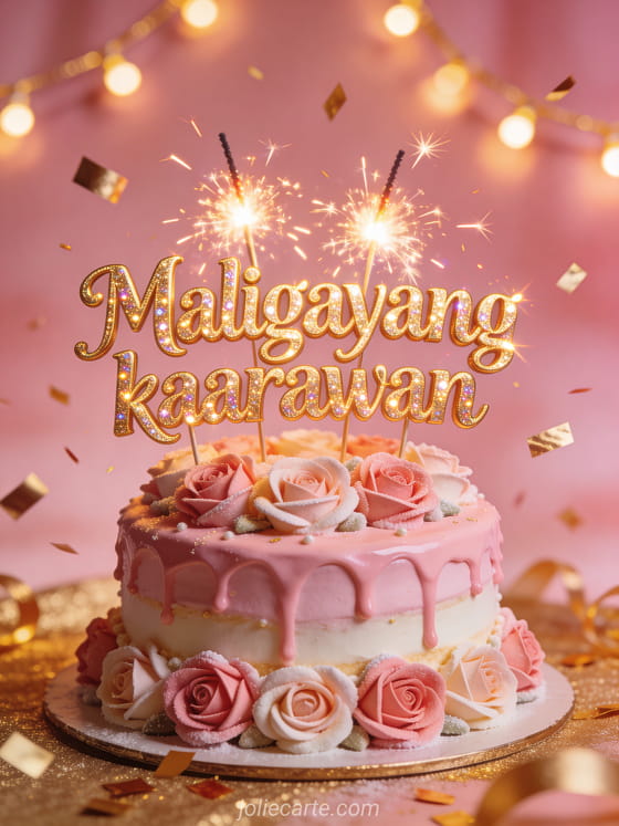 Magpadala ng nakasisilaw na pagbati ng maligayang kaarawan upang ipagdiwang ang espesyal na araw ng isang tao nang may kinang at kagalakan. Gawin ang pagdiriwang na hindi malilimutan. Tuklasin din ang maligayang kaarawan sa mahal kong Nanay, isang card ng kaarawan para sa Nanay o isang SMS ng kaarawan para sa Nanay.