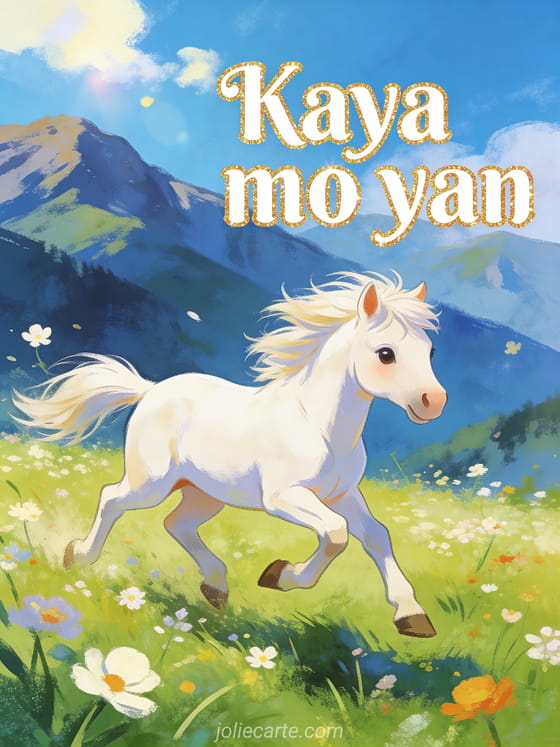 Magpadala ng nakapagpapatibay na card gamit ang mensaheng Kaya mo yan sa isang taong nangangailangan ng lakas. Tuklasin din ang isang card ng tapang at pagpapagaling, isang magandang card ng pagpapagaling o isang card ng pagpapagaling para sa kanya.