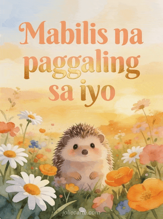 Magpadala ng nakakatuwang card gamit ang mensaheng Mabilis na paggaling sa iyo sa isang minamahal. Tuklasin din ang isang card mensahe ng pagpapagaling, isang card ng pagpapagaling at pagmamahal o isang card ng pagmamahal at paggaling.
