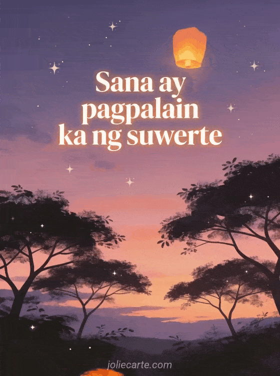 Magpadala ng makatang pagbati ng good luck na may lumilipad na parol na pumapaitaas sa magandang langit ng takipsilim. Tuklasin din ang isang good luck exam card o isang good luck exam gif.