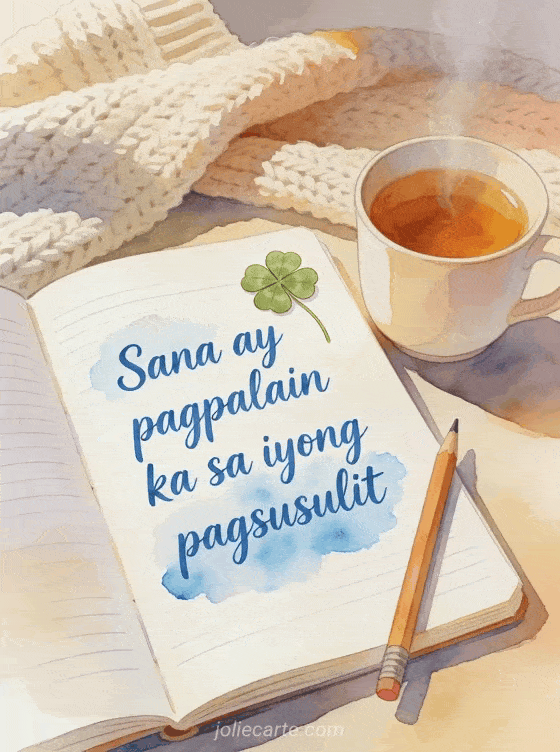 Sana ay pagpalain ka sa iyong pagsusulit isang mainit at maalalahanin na pagbati ng good luck