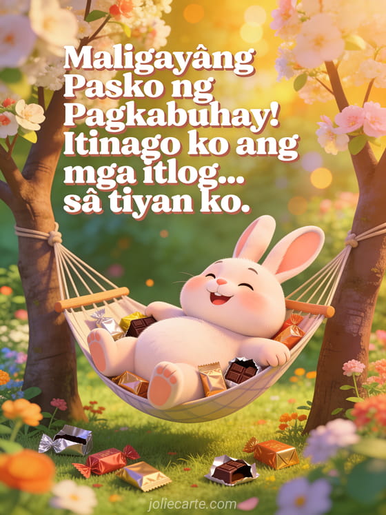 Magbahagi ng magandang tawanan ngayong Pasko ng Pagkabuhay gamit ang nakakatawang card na ito tungkol sa kuneho na kinain ang lahat ng itlog. Tuklasin din ang humor ng Pasko ng Pagkabuhay o nakakatawang card ng Pasko ng Pagkabuhay.