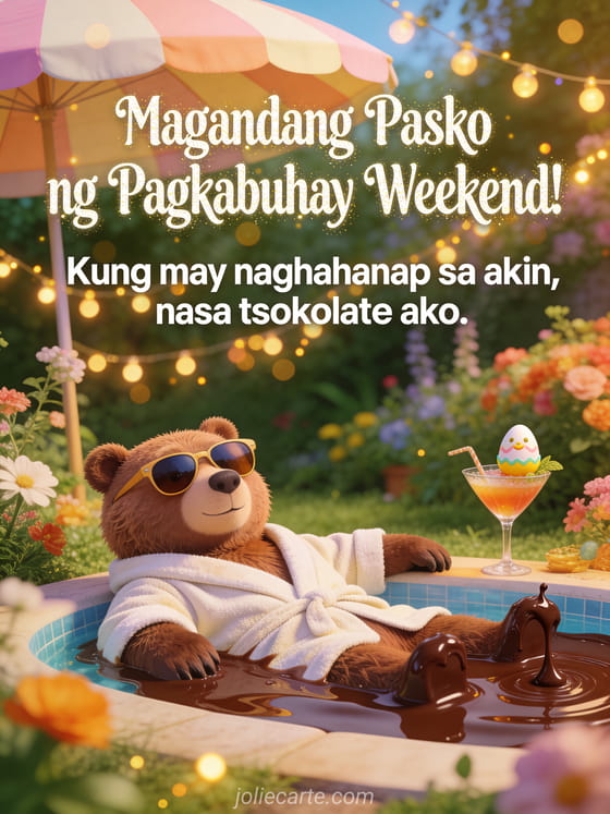 Magandang Pasko ng Pagkabuhay Weekend! Kung may naghahanap sa akin, nasa tsokolate ako. isang nakakatawang card para sa weekend ng Pasko ng Pagkabuhay