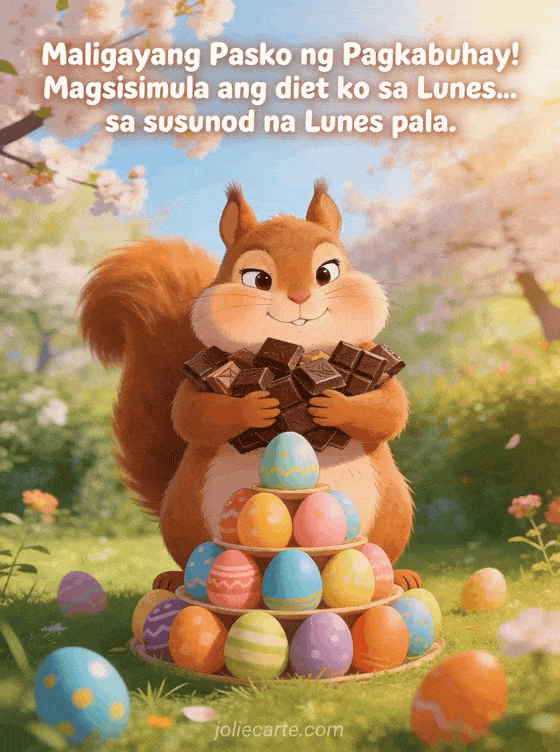 Maligayang Pasko ng Pagkabuhay! Magsisimula ang diet ko sa Lunes... sa susunod na Lunes pala. isang nakakatawang card tungkol sa tukso ng tsokolate