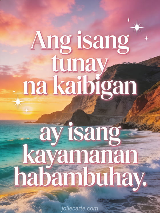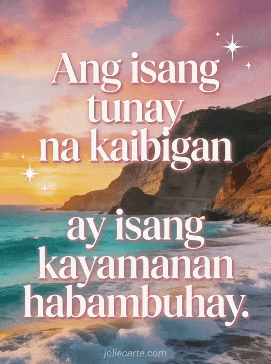 Ang isang tunay na kaibigan ay isang kayamanan habambuhay. isang taos-pusong pagkilala sa isang mahalagang pagkakaibigan