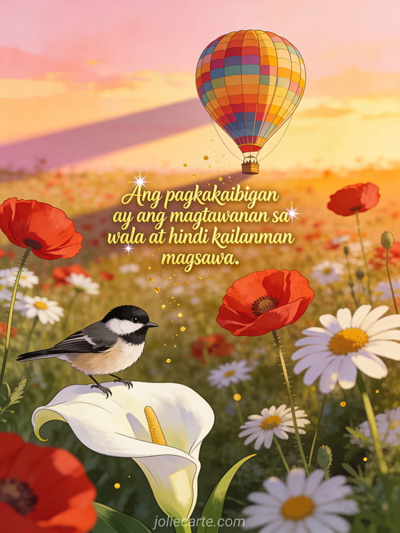 Ang pagkakaibigan ay ang magtawanan sa wala at hindi kailanman magsawa. isang masayang pagkilala sa tawanan ng pagkakaibigan