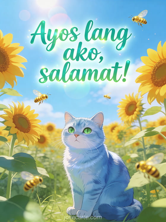 Magpadala ng masayang ayos lang ako, salamat para ibahagi ang iyong positibong enerhiya. Tuklasin din ang isang card na hoy kamusta ka, magandang umaga mahal kamusta ka o hoy kamusta ka na.