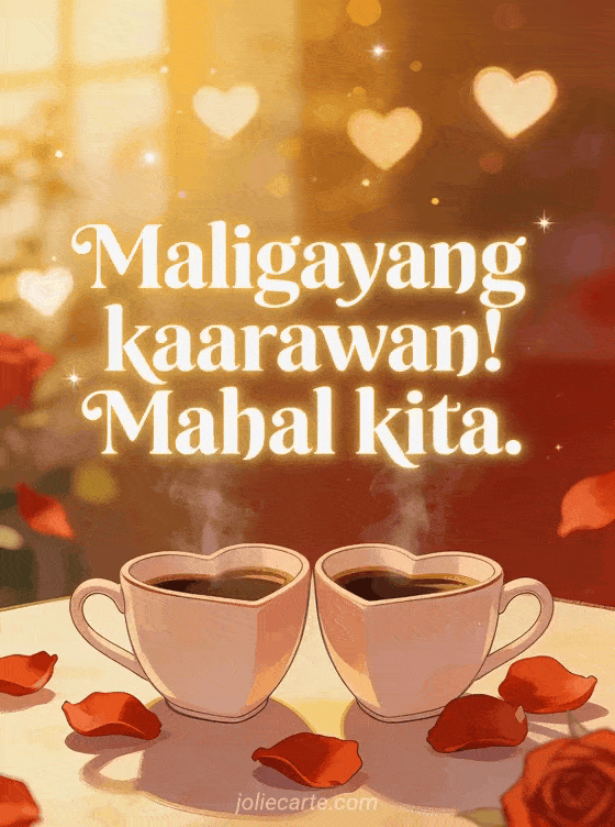 Sabihin ang “Mahal kita” gamit ang magandang birthday card na ito. Dalawang heart-shaped na tasa ng kape at mga pulang petals ng rosas ang lumilikha ng intimate at mapagmahal na kapaligiran. Tuklasin din ang nakakatawang birthday card o isang birthday card na may champagne.