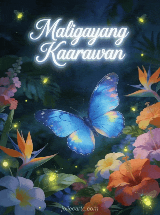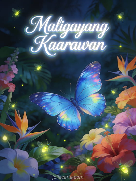 Batiin siya ng maligayang kaarawan gamit ang eleganteng card na ito na may asul na morpho paru-paro na may makintab na pakpak sa tropikal na hardin. Tuklasin din ang isang card ng kaarawan na may pusa o isang card ng kaarawan na may kabayo.