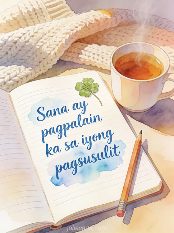 Sana ay pagpalain ka sa iyong pagsusulit isang mainit at maalalahanin na pagbati ng good luck
