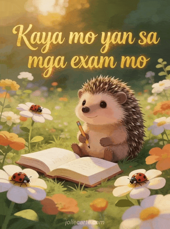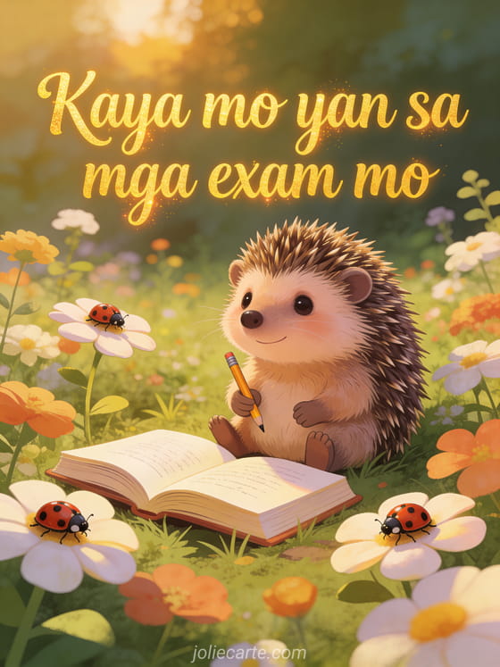 Kaya mo yan sa mga exam mo isang malambot na card ng pagpapalakas ng loob kasama ang adorableng hedgehog
