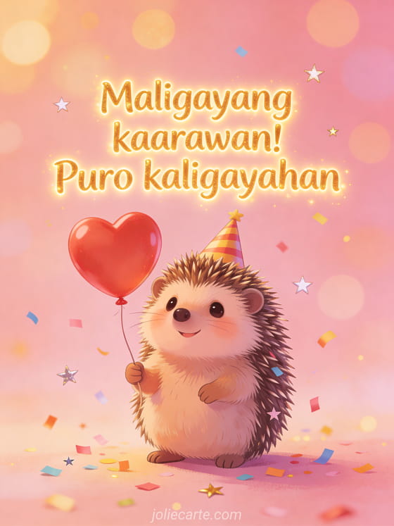 Batiin ang isang tao ng puro kaligayahan sa kanilang kaarawan gamit ang adorable card na ito na may cute na hedgehog. Tuklasin din ang birthday card ngumiti sa buhay o ang birthday card magandang bagay o ang birthday card tamasahin bawat sandali.