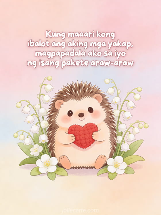 Kung maaari kong ibalot ang mga yakap, ipapadala ko araw-araw isang malambot na mensahe ng pag-ibig na ipinadala sa kabila ng layo