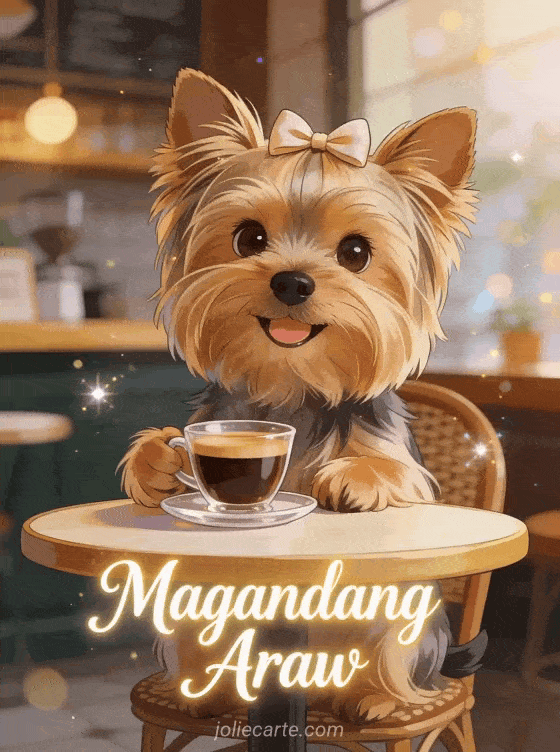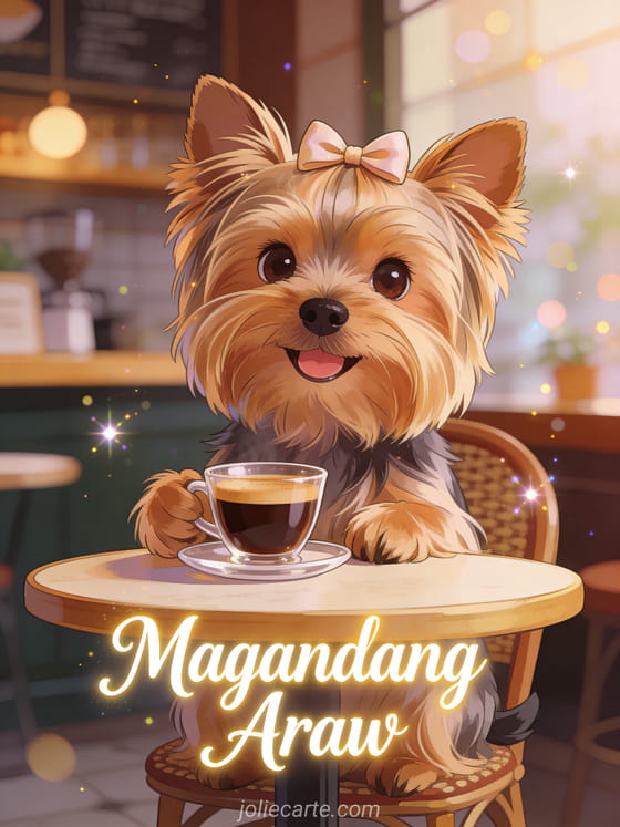 Pasayahin ang araw ng iyong mga mahal sa buhay sa pamamagitan ng pagpapadala ng magandang araw gamit ang nakakatuwang card na may Yorkshire Terrier sa cafe.
